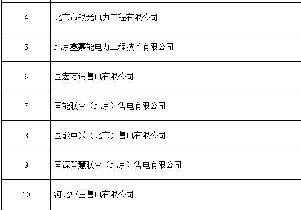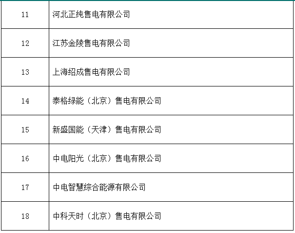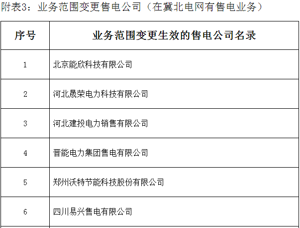 冀北新增19家售電公司及業(yè)務范圍變更的8家售電公司