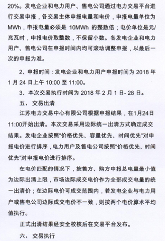 江蘇電力交易中心日前發(fā)布了2018年2月份江蘇省電力集中競價交易公告,公告中稱,本次集中競價交易電量不設交易上限,交易申報及成交價格為電廠上網(wǎng)側電價。詳情如下:
