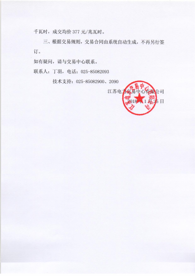 二、按照雙方摘牌形成的無約束交易電量為:發(fā)電企業(yè)0億千瓦時,售電公司之間成交1筆,電量0.022億千瓦時,一類用戶2億千瓦時。經(jīng)調(diào)度機構(gòu)安全校核,最終成交結(jié)果0.022億千瓦時,成交均價377元/兆瓦時。