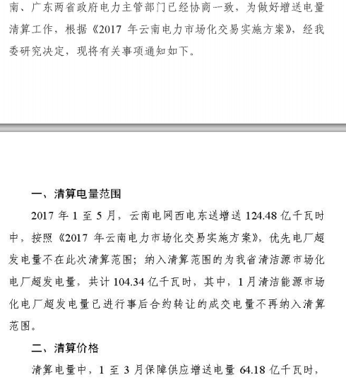 云南省工業(yè)和信息化委員會日前發(fā)布《關(guān)于2017年1至5月云電送粵增送電量清算工作有關(guān)事項的通知》指出:一、清算電量范圍2017年1至5月,云南