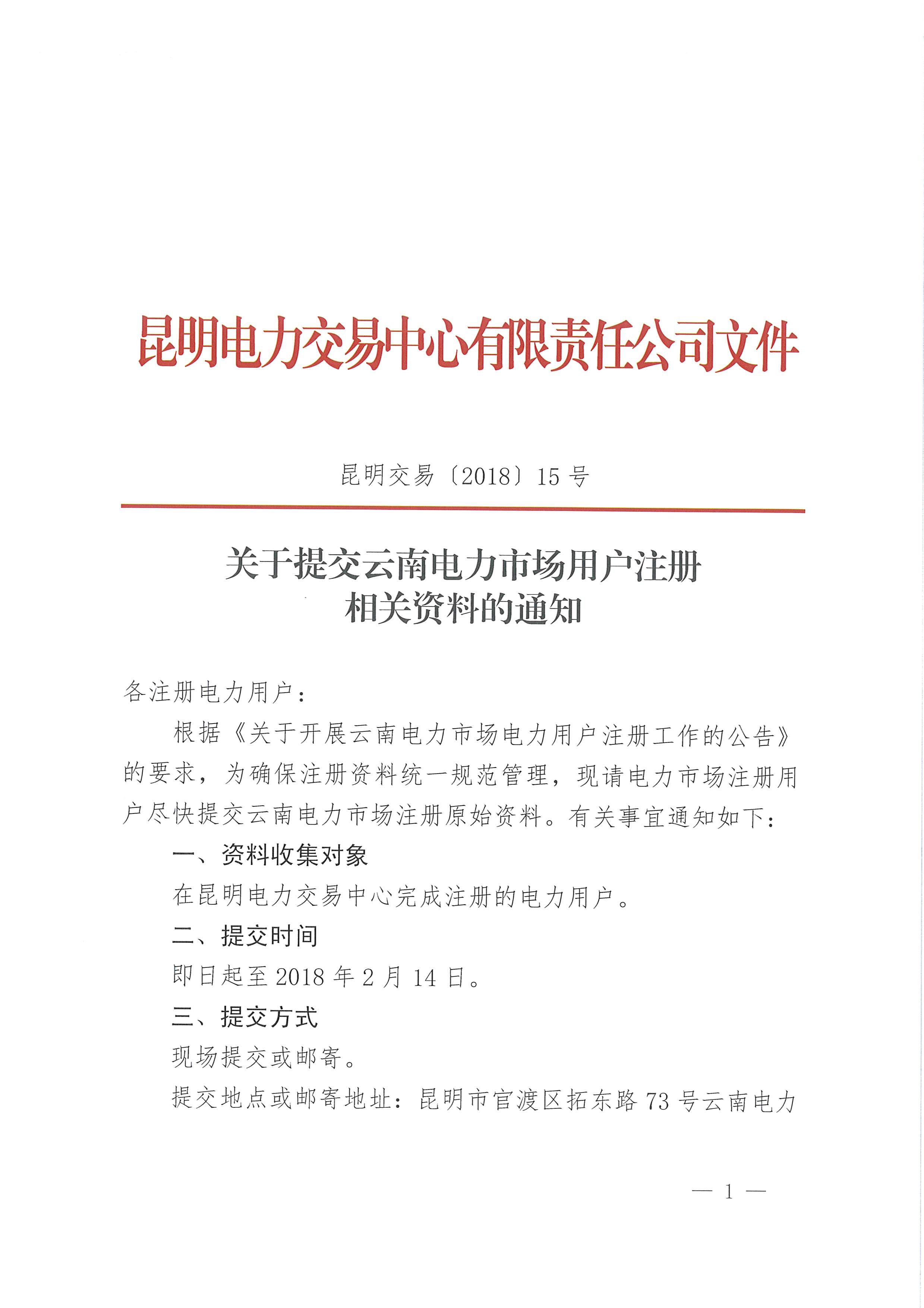 昆明電力交易中心日前發(fā)布《關(guān)于提交云南電力市場用戶注冊相關(guān)資料的通知》,提交日期:即日起至2018年2月14日。