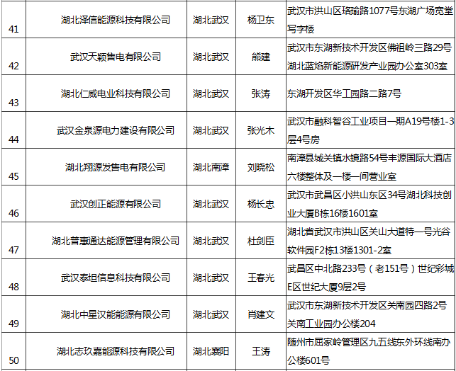 擬列入首批湖北省售電企業(yè)目錄企業(yè)名單