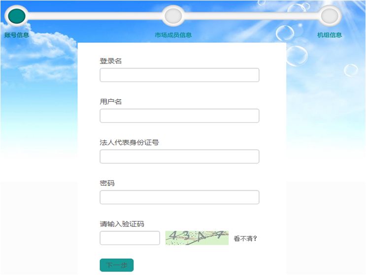 04.填寫完賬號信息后,點擊“下一步”,填寫市場成員基本信息(注冊用戶類型必須選擇直接交易用戶),并上傳附件,點擊“下一步”。