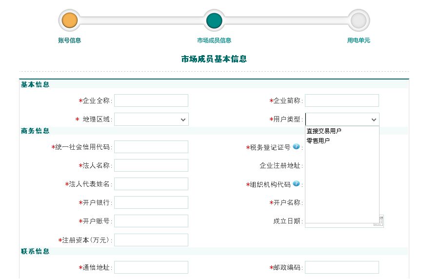 4.市場成員基本信息中,“用戶類型”必須選擇“直接交易用戶”。