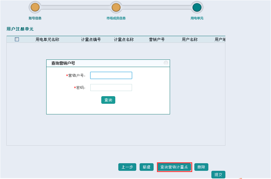 07.方式二:通過查詢營銷計量點信息生成用電單元。點擊“查詢營銷計量點”,輸入營銷戶號及查詢密碼。