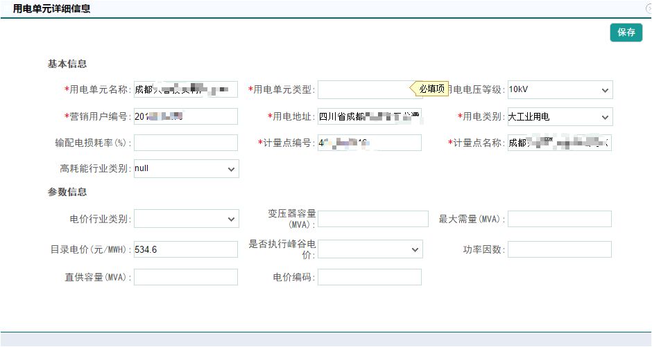 方式一:直接新建用電單元。點擊“新建”按鈕創(chuàng)建用電單元,填寫完用電單元信息,保存即可。