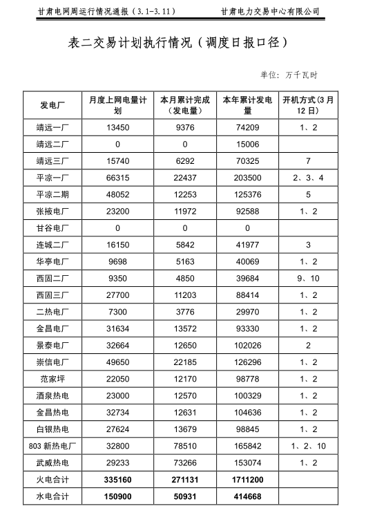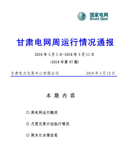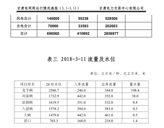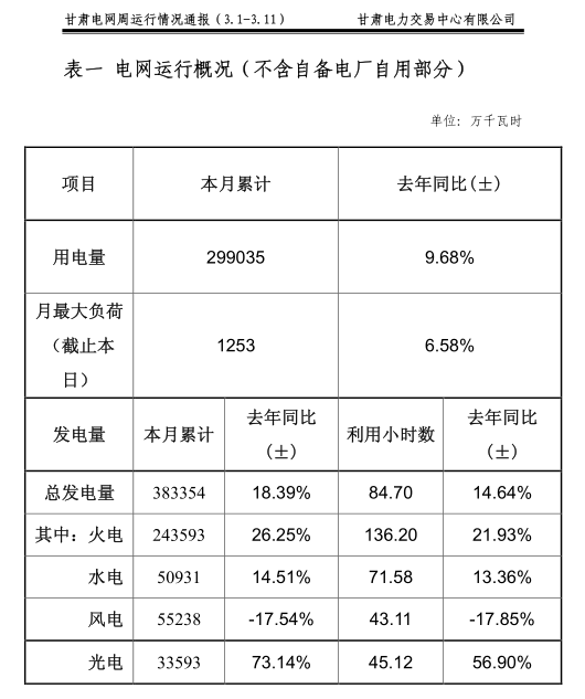 甘肅電力交易中心日前發(fā)布:甘肅電網(wǎng)周運(yùn)行情況通報(bào)(3月1日-3月11日)