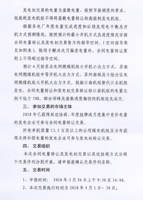 4月江蘇省發(fā)電企業(yè)合同電量轉(zhuǎn)讓及發(fā)電權(quán)交易26日展開