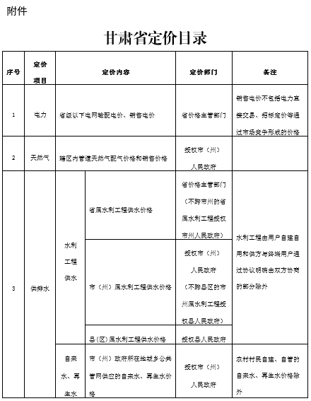 原《甘肅省定價目錄》(甘肅省發(fā)展和改革委員會公告2015年第1號)同時廢止。