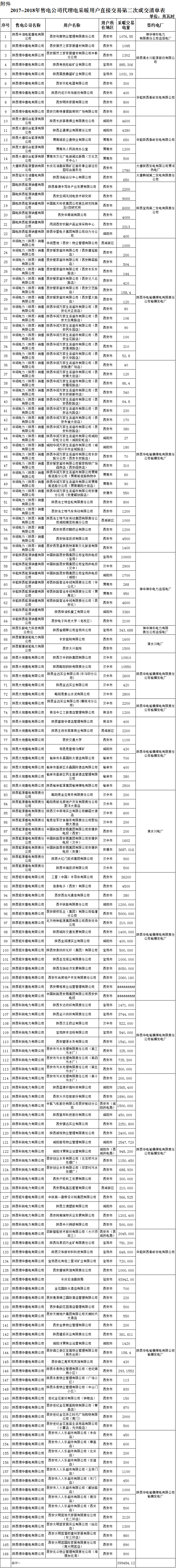 2.售電方:已經(jīng)在《關(guān)于公布陜西省2017-2018年冬季集中式電采暖用戶直接交易第二次結(jié)果的通知》(陜發(fā)改運(yùn)行函[2018] 413號)中公示的參與本次直接交易的7家發(fā)電企業(yè)(詳見附件2);
