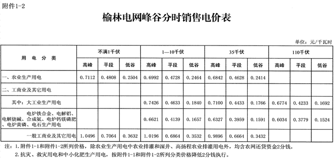 附件:1.陜西電網(wǎng)銷售電價表(不含榆林)