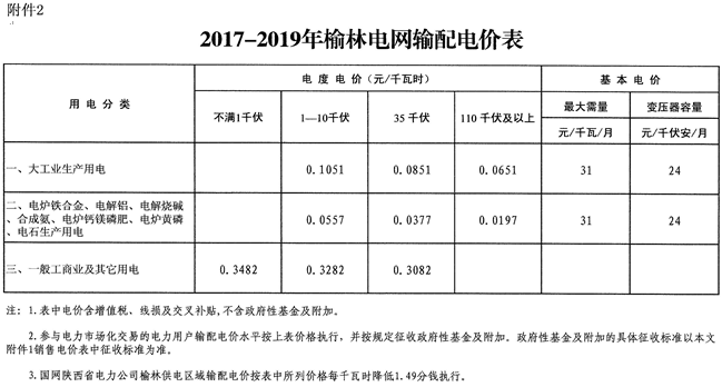 2.2017-2019年榆林電網(wǎng)輸配電價表