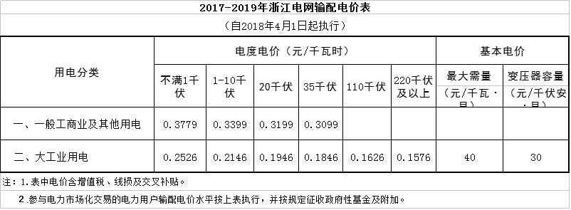 2.2017-2019年浙江電網(wǎng)輸配電價(jià)表