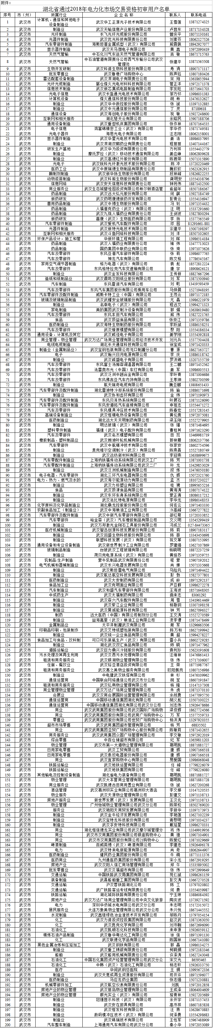 附件:湖北省通過2018年電力市場(chǎng)化交易資格初審用戶名單