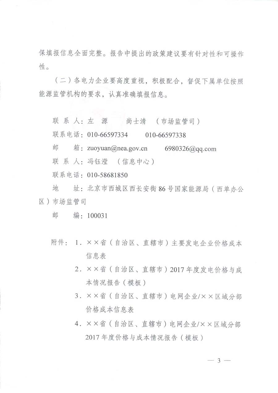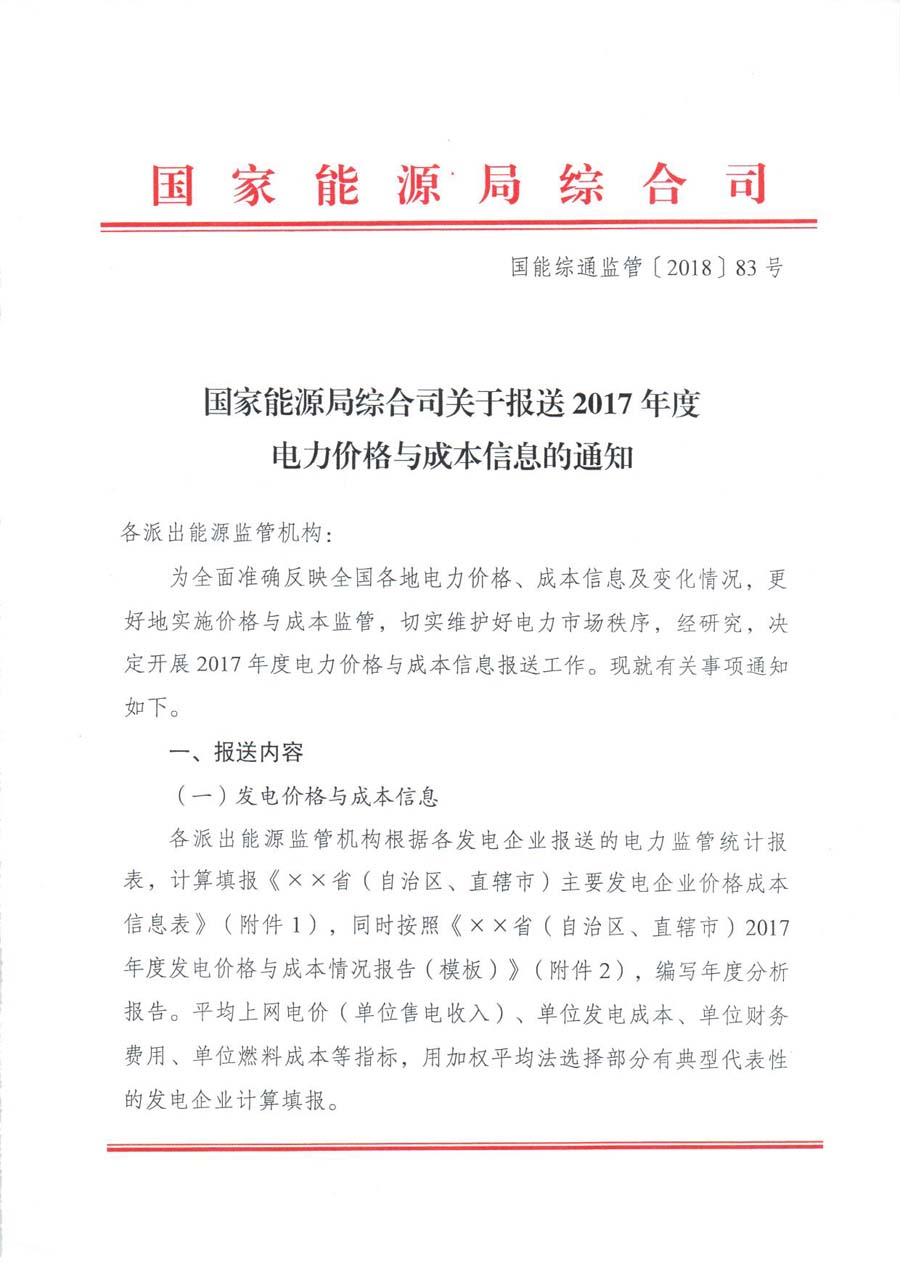 國(guó)家能源局日前發(fā)布了《關(guān)于報(bào)送2017年度電力價(jià)格與成本信息的通知》。通知中稱,為全面準(zhǔn)確反映全國(guó)各地電力價(jià)格、成本信息及變化情況,更