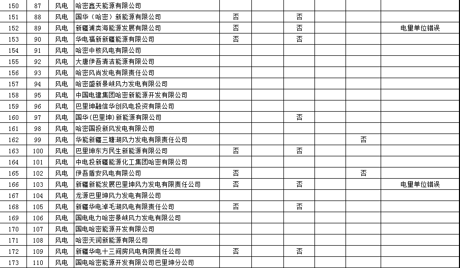 6、葛洲壩伊犁水電開發(fā)有限公司、新疆萬邦能源發(fā)展有限公司、新疆華瑞新能源有限公司等22家發(fā)電企業(yè)上報(bào)的數(shù)據(jù)有問題,其中15家上網(wǎng)電量大于或者等于發(fā)電量,7家電量單位錯誤,請下次注意。