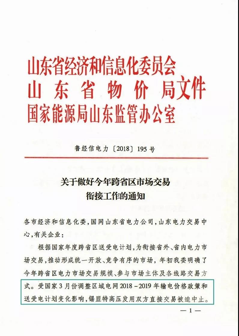 山東經(jīng)信委在5月29日下發(fā)了一份文件,是關(guān)于今年跨省區(qū)市場(chǎng)交易銜接工作的一些安排,根據(jù)文件顯示,由于受到區(qū)域電網(wǎng)輸電價(jià)格政策調(diào)整和送受電計(jì)劃變化影響,錫盟特高壓的直接交易被迫中止了,但是為了確保交易計(jì)劃的落實(shí),所以今年跨省交易的方式就調(diào)整成為掛牌方式組織進(jìn)行。