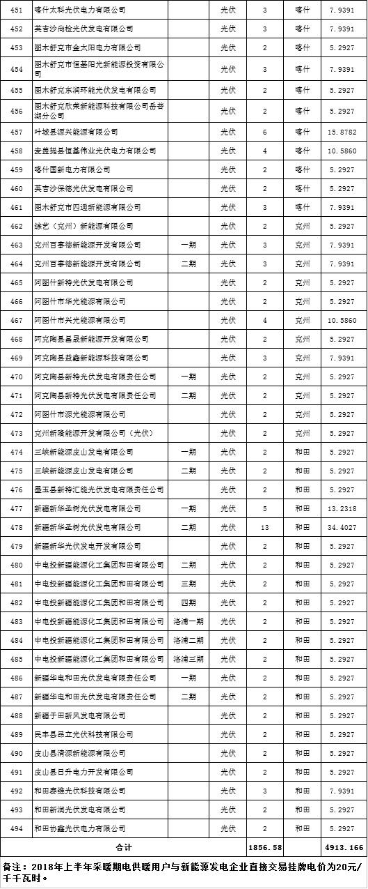 依據(jù)自治區(qū)發(fā)改、經(jīng)信委、住建廳、能監(jiān)辦委聯(lián)合《關(guān)于印發(fā)我區(qū)電供暖價(jià)格機(jī)制指導(dǎo)意見(jiàn)的通知》(新發(fā)改能價(jià)〔2017〕1659號(hào))和《關(guān)于新疆電網(wǎng)2018年上半年采暖期電供暖用戶(hù)與新能源發(fā)電企業(yè)直接交易方案的批復(fù)》(新經(jīng)信電力函〔2017〕530號(hào))文件精神,新疆電力交易中心依規(guī)完成2018年上半年電采暖直接交易的組織、執(zhí)行工作。截至4月15日交易期結(jié)束,電供暖用戶(hù)實(shí)際用電量42413.1663萬(wàn)千瓦時(shí),超過(guò)掛牌成交電量(37500萬(wàn)千瓦時(shí))4913.1663萬(wàn)千瓦時(shí)。按照方案批復(fù)文件中“2017-2018年冬季供暖期結(jié)束后,當(dāng)實(shí)際用電量小于本次交易電量時(shí),按實(shí)際用電結(jié)算;當(dāng)實(shí)際用電量大于本次交易電量時(shí),差額電量由并網(wǎng)新能源發(fā)電企業(yè)平攤”的要求,在疆內(nèi)并網(wǎng)發(fā)電新能源企業(yè)按裝機(jī)容量比例分?jǐn)?,形成以下分?jǐn)偨Y(jié)果,現(xiàn)予以公示,公示期7天。如有問(wèn)題,及時(shí)反饋,并在公示期結(jié)束后統(tǒng)一修正。