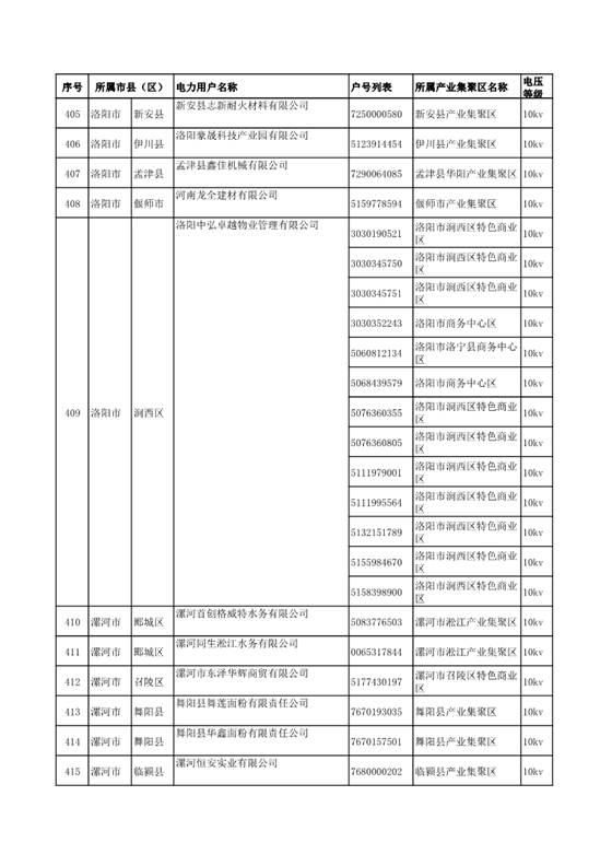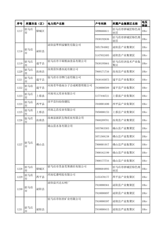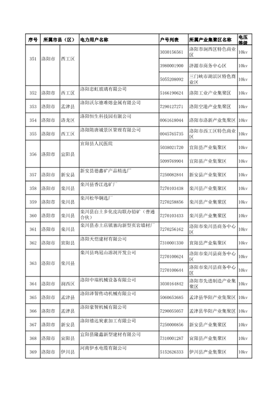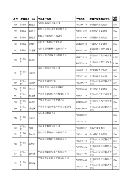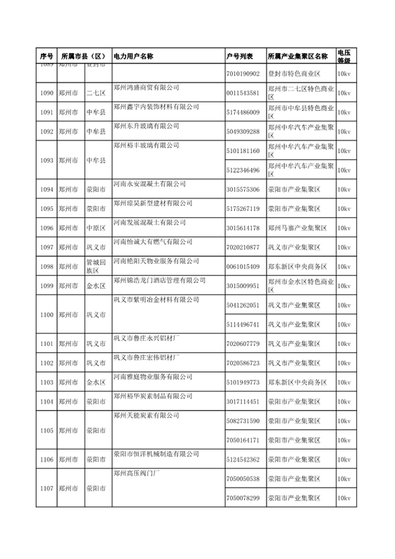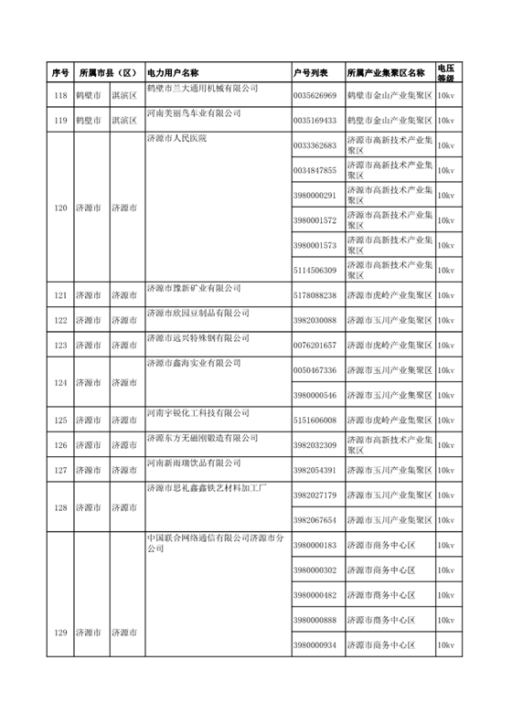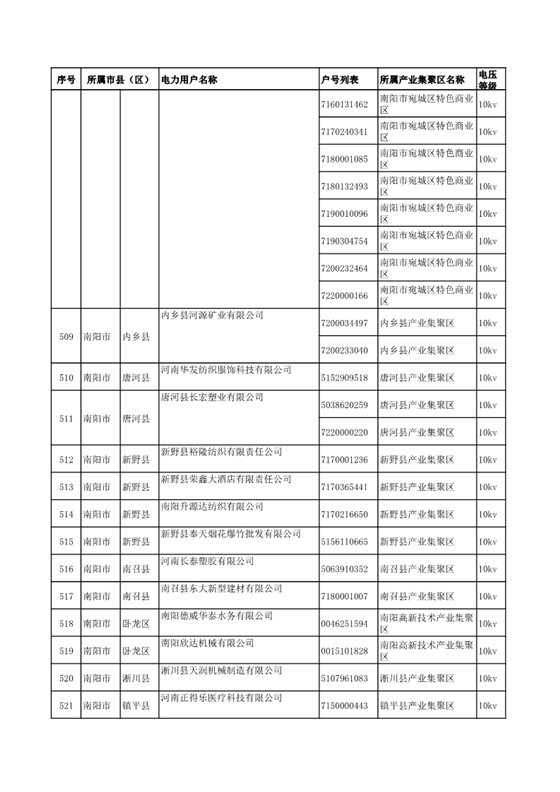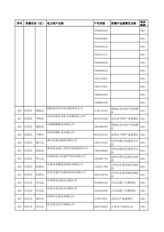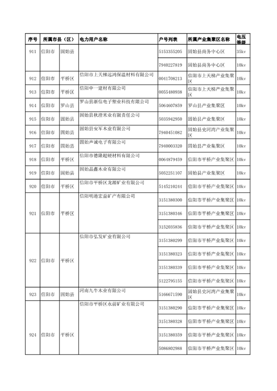 河南公示2018年第七批1284家電力用戶(附名單)