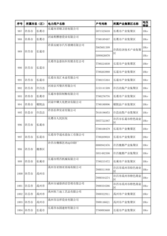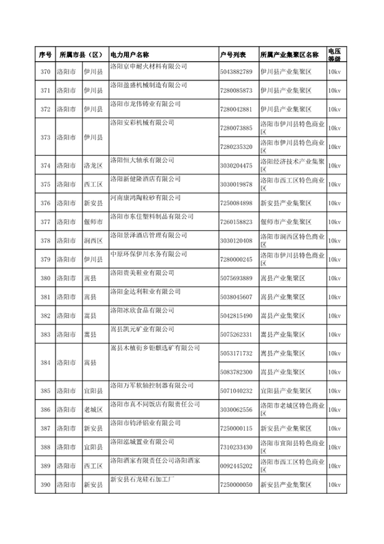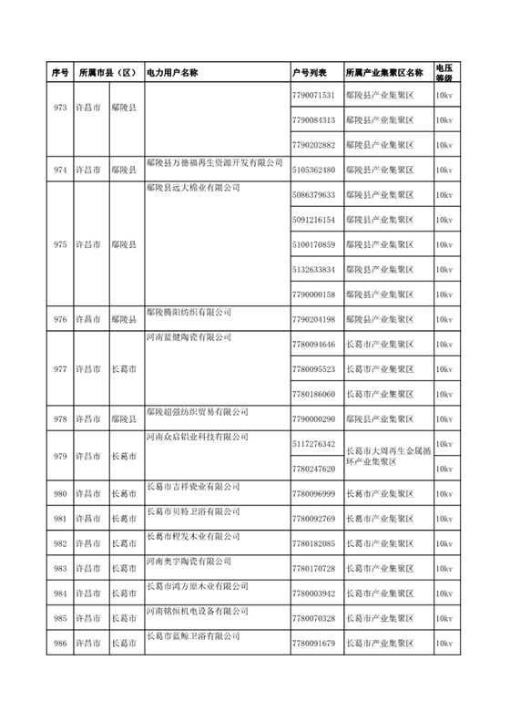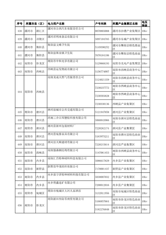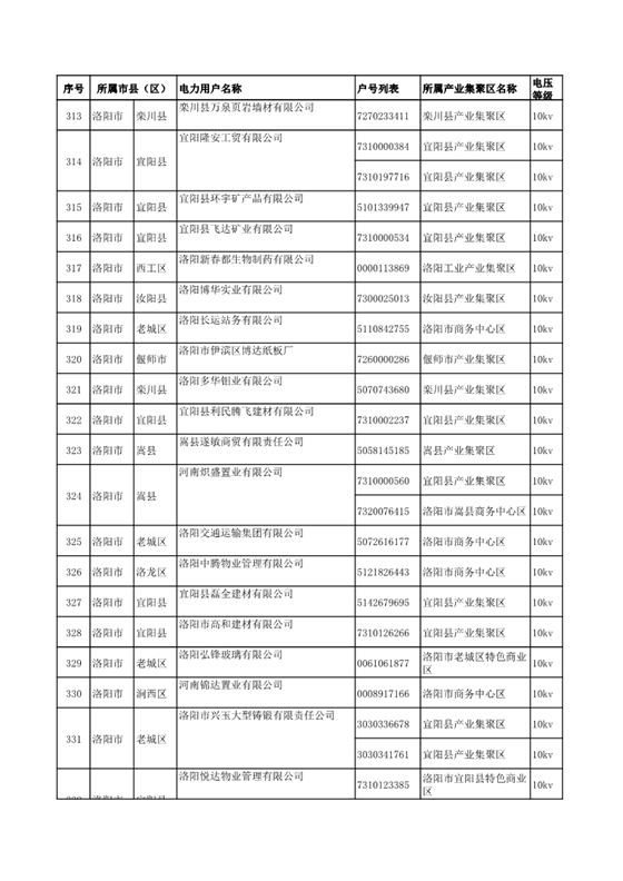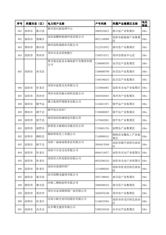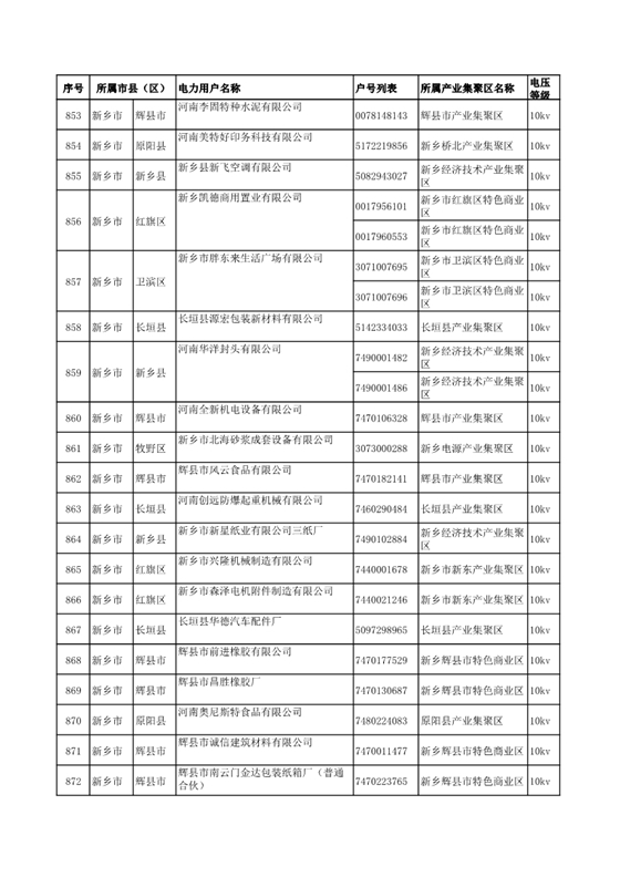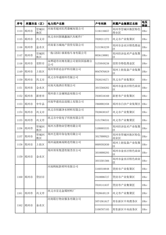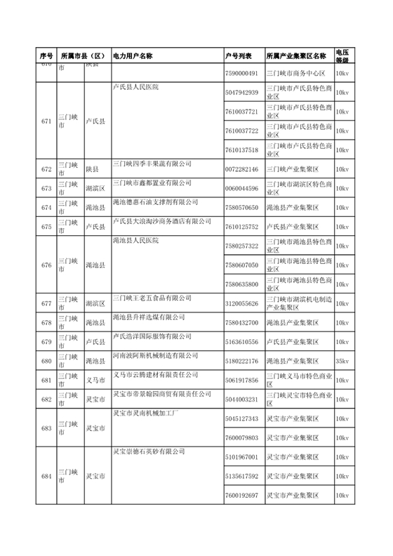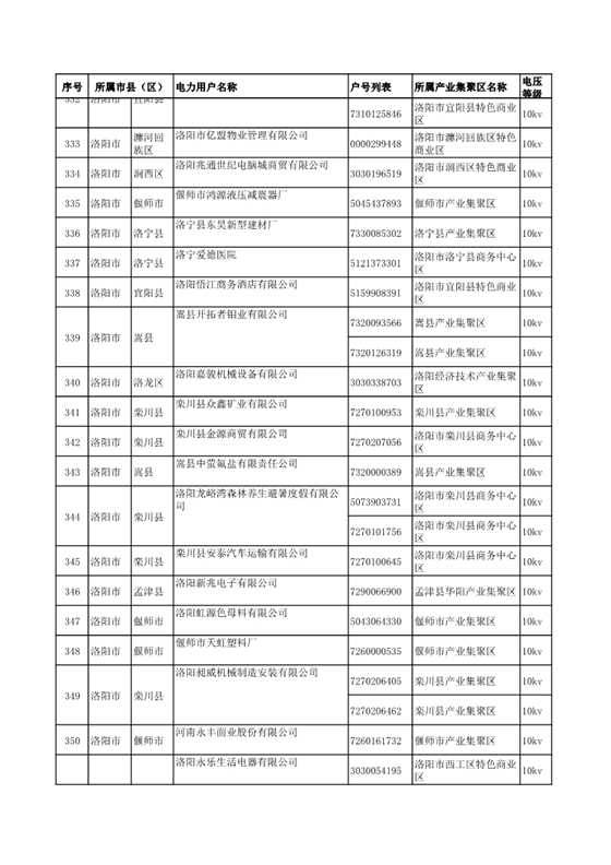 河南公示2018年第七批1284家電力用戶(附名單)