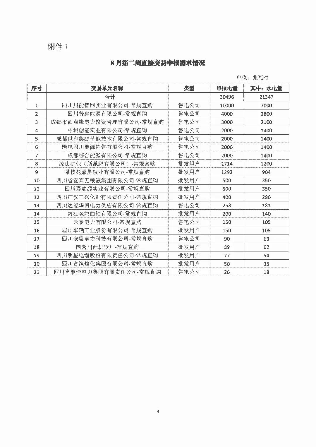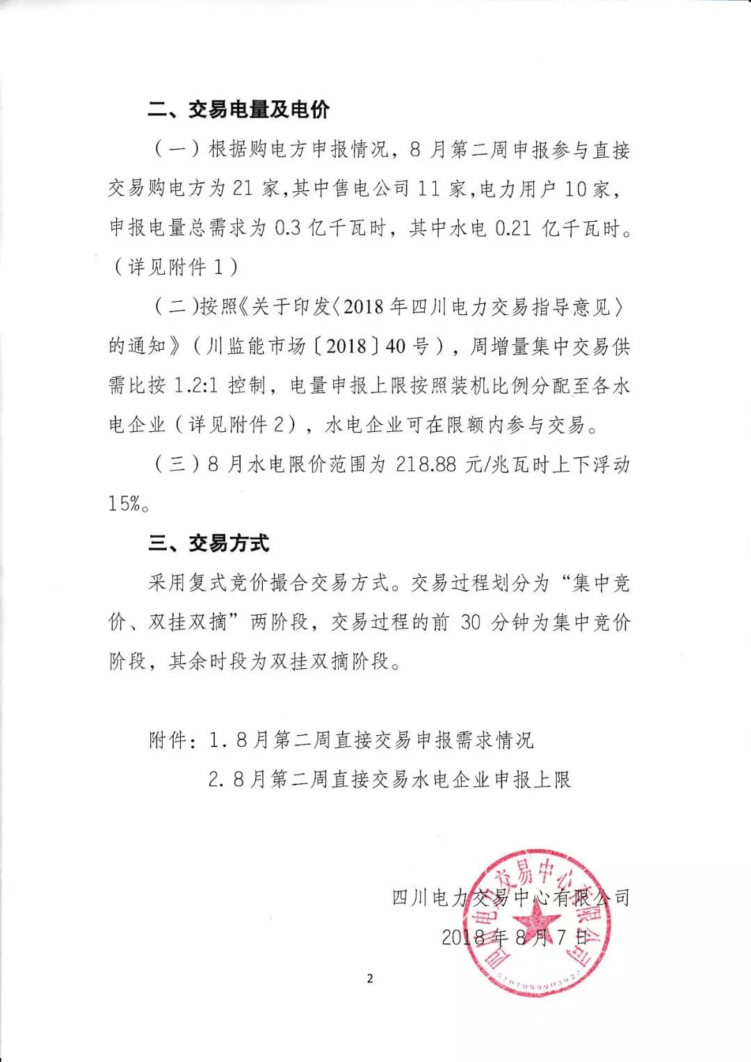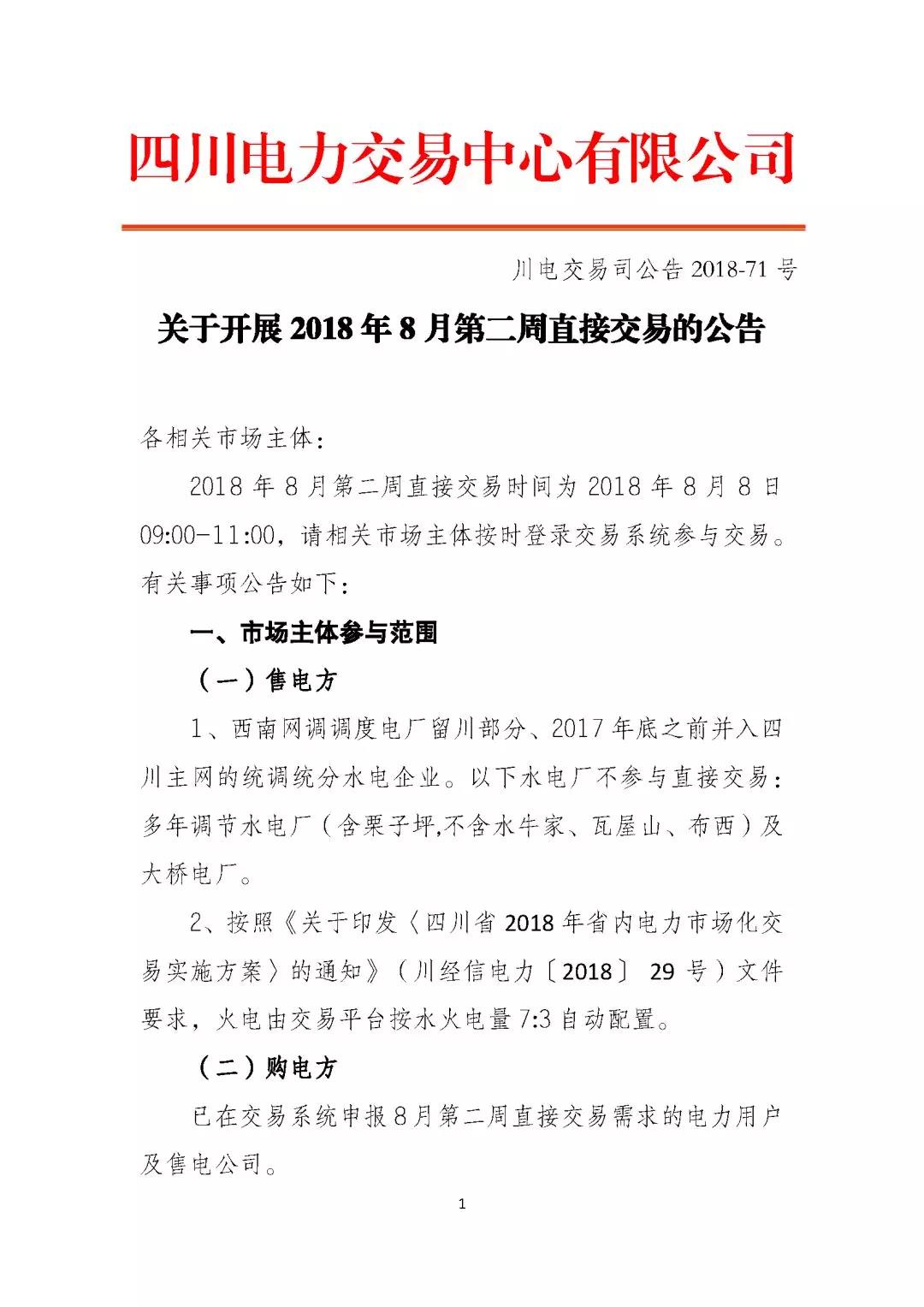 公告 | 四川關(guān)于開(kāi)展2018年8月第二周直接交易的公告