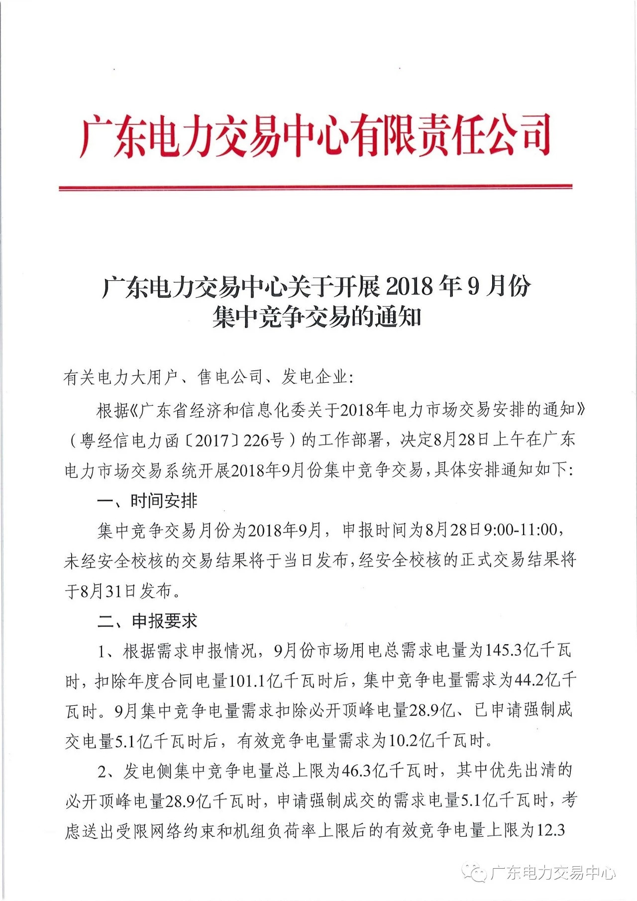 廣東電力交易中心今日發(fā)布了《關(guān)于開展2018年9月份集中競爭交易的通知》,申報(bào)時(shí)間為8月28日9:00-11:00。