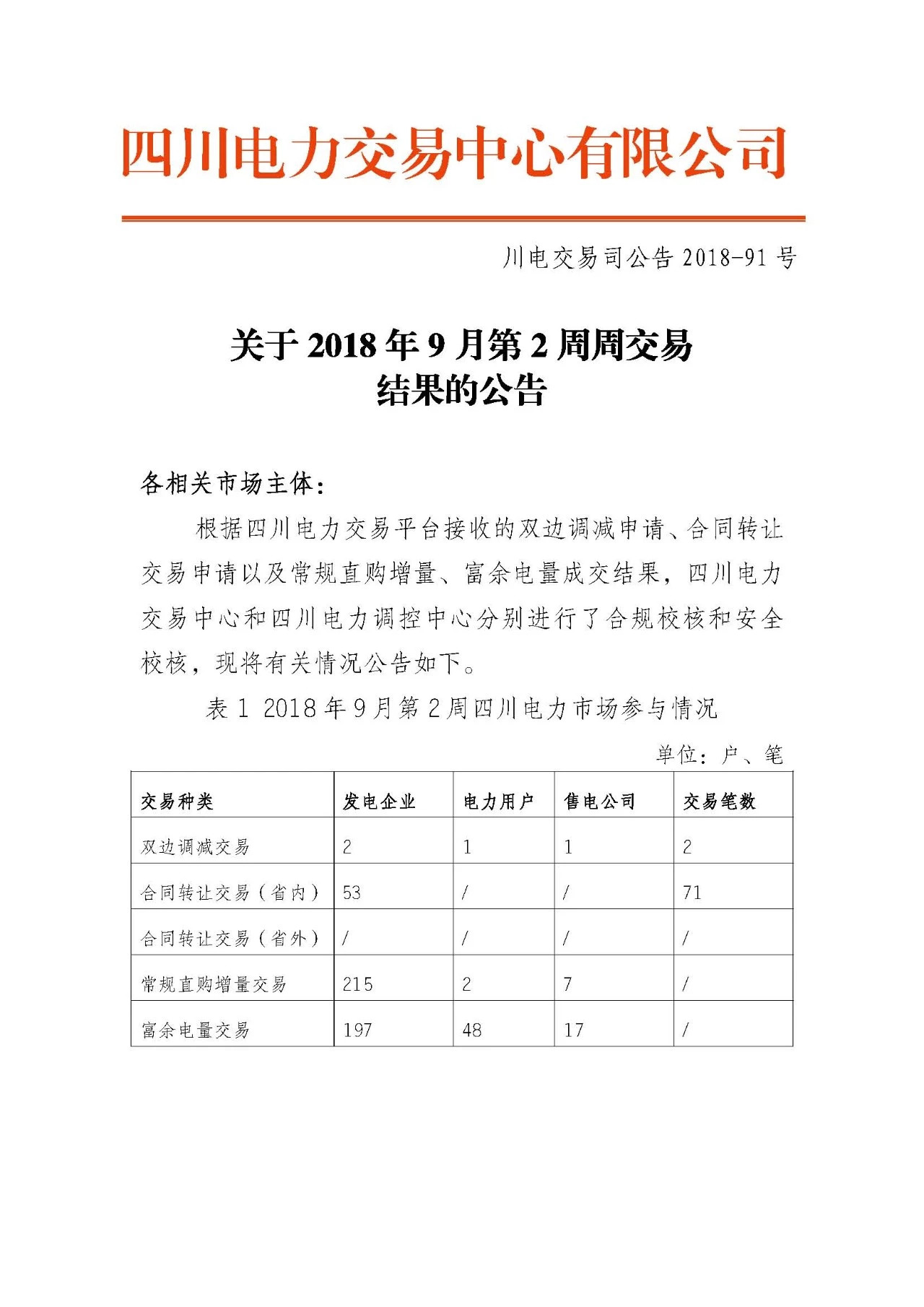 四川2018年9月第2周周交易結果