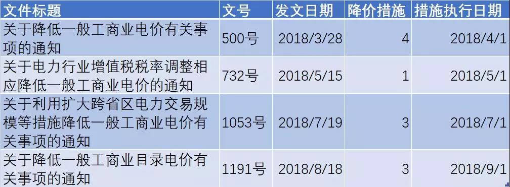 自年初以來,國家發(fā)改委價格司已經(jīng)連續(xù)發(fā)布了四份文件(本文件是第四份)、推出了11項措施來降低一般工商業(yè)電價: