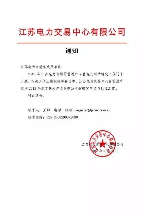 江蘇江蘇電力交易中心電力市場零售用戶與售電公司綁定通知