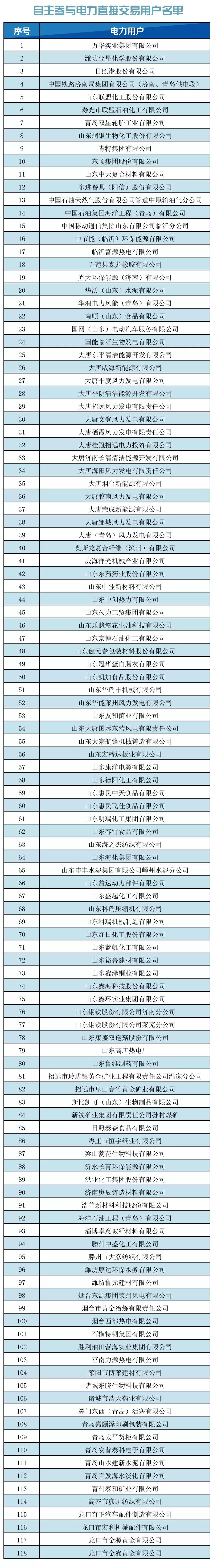 購電方:在山東電力交易中心網(wǎng)站公示通過、完成注冊(cè)且已提交有效2018年跨省區(qū)電力用戶代理協(xié)議、省內(nèi)電力用戶代理協(xié)議的售電公司;省經(jīng)信委準(zhǔn)許并在山東電力交易中心網(wǎng)站完成注冊(cè)、可自主參與2018年跨省區(qū)電力直接交易的電力用戶和省內(nèi)電力直接交易的電力用戶(詳見下表)。