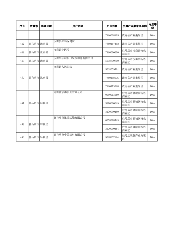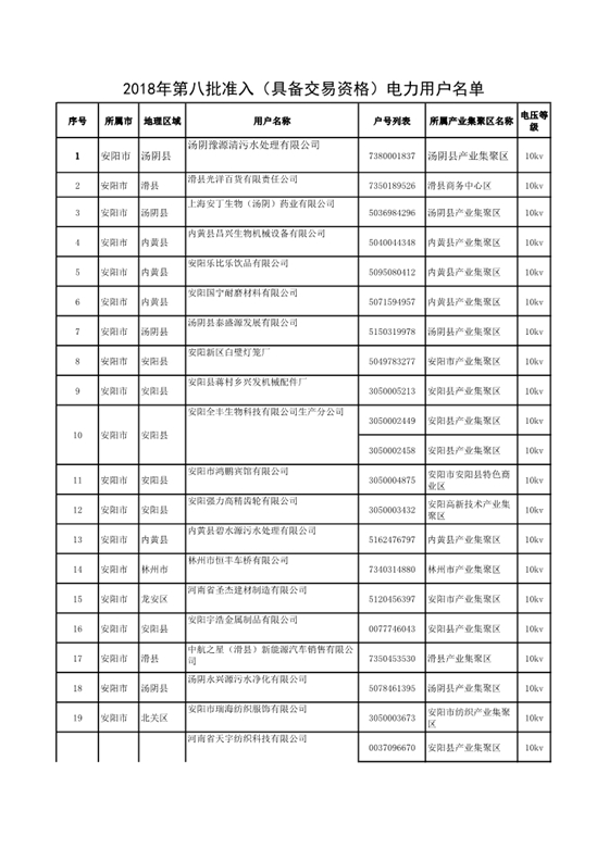 河南2018年第八批453家準入電力用戶名單(具備交易資格)