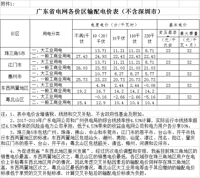 附件:1.廣東省電網(wǎng)各價區(qū)輸配電價表(不含深圳市)