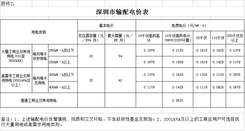二、公布深圳市輸配電價標(biāo)準(zhǔn),詳見附件2。