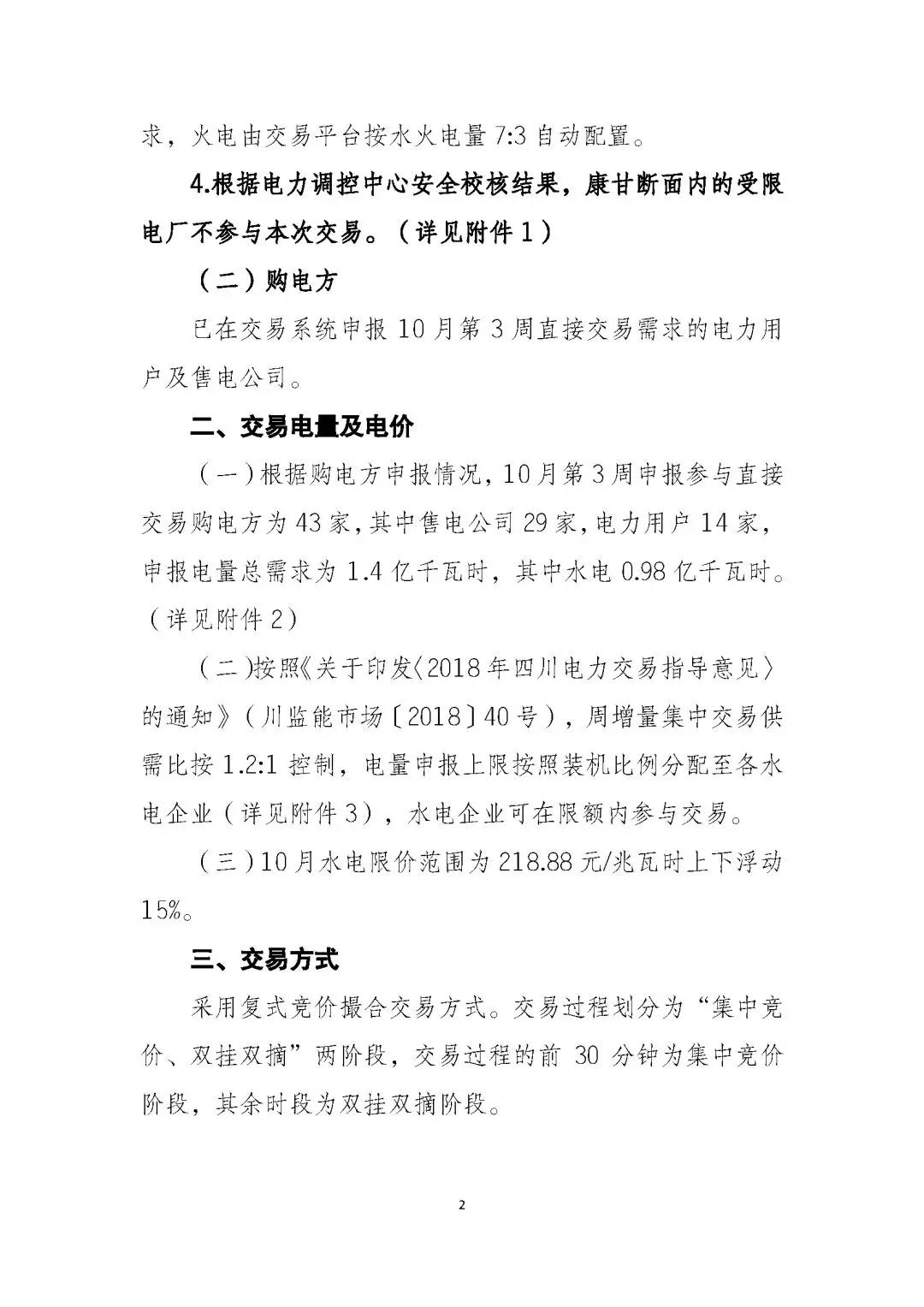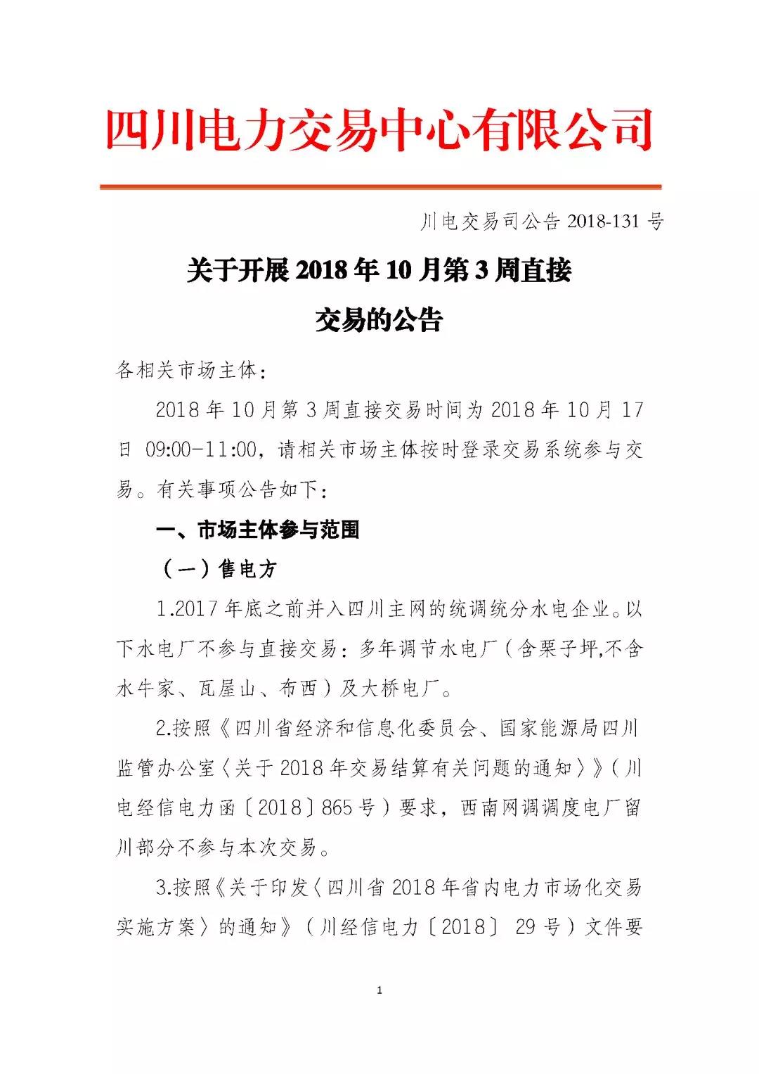 公告 | 四川關(guān)于開展2018年10月第3周直接交易的公告