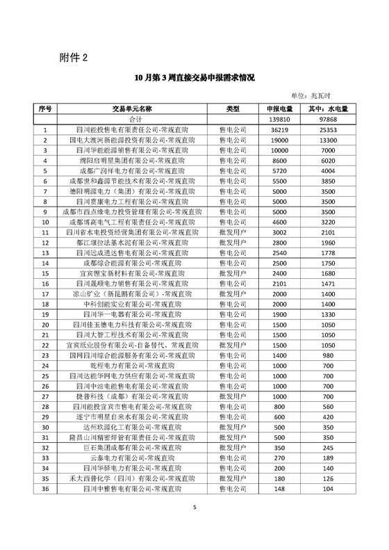 四川2018年10月第3周直接交易:電量總需求1.4億千瓦時(shí)