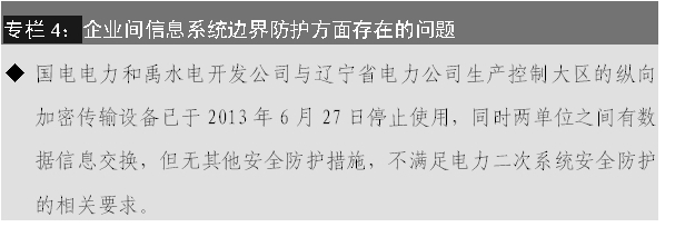 4. 部分發(fā)電企業(yè)與電網(wǎng)企業(yè)之間的信息系統(tǒng)邊界防護(hù)有待加強(qiáng)。