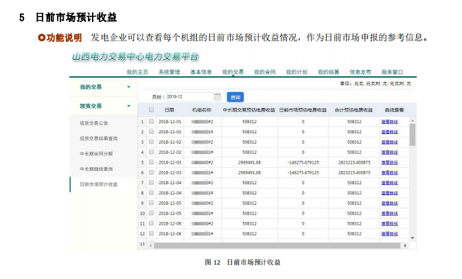 另外印發(fā)了現(xiàn)貨申報(bào)操作手冊:發(fā)電企業(yè)現(xiàn)貨功能包括中長期合同分解,中長期曲線查詢、現(xiàn)貨交易公告、現(xiàn)貨交易結(jié)果查詢、日前市場預(yù)計(jì)收益;電力用戶現(xiàn)貨功能包括中長期合同分解確認(rèn)、現(xiàn)貨交易公告。