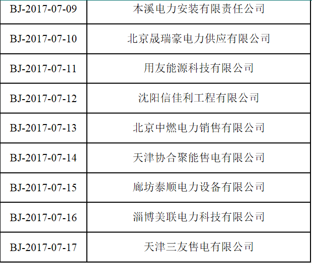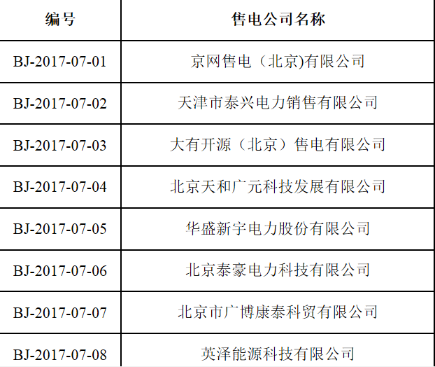 公示期間,任何單位和個人如有異議,可通過來電、來信、來訪等方式向北京電力交易中心實名反映。本次公示售電公司目錄如下: