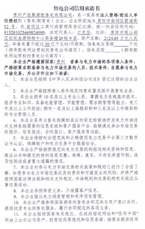 貴州公示首批4家售電公司 成為第六個公示售電公司信息省份