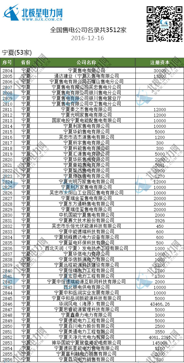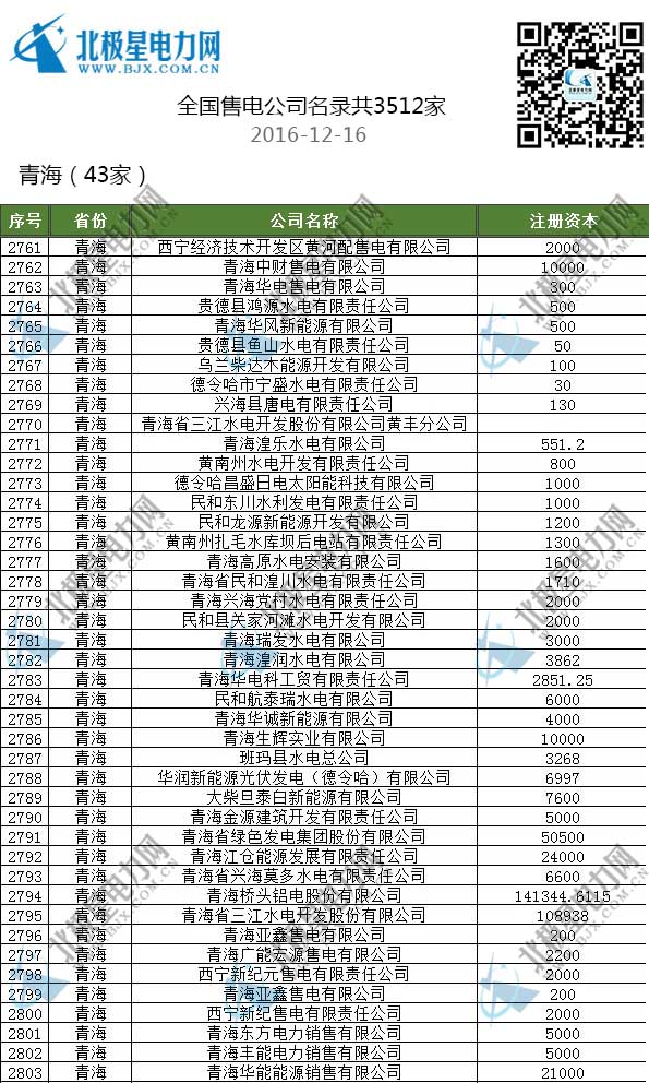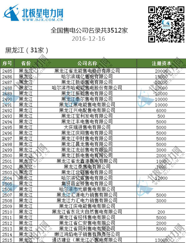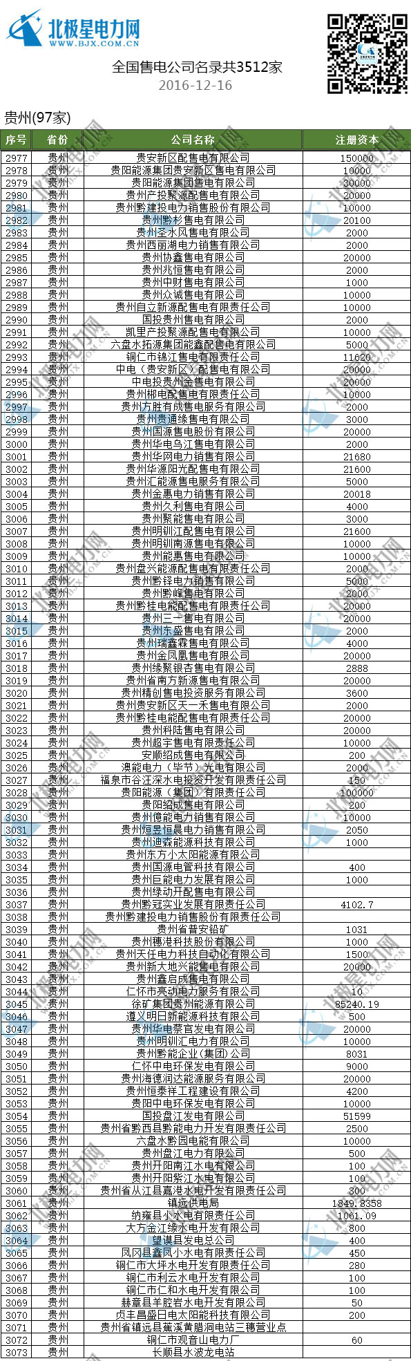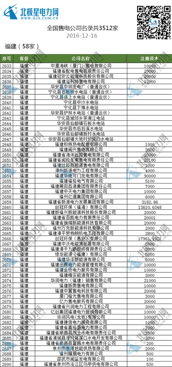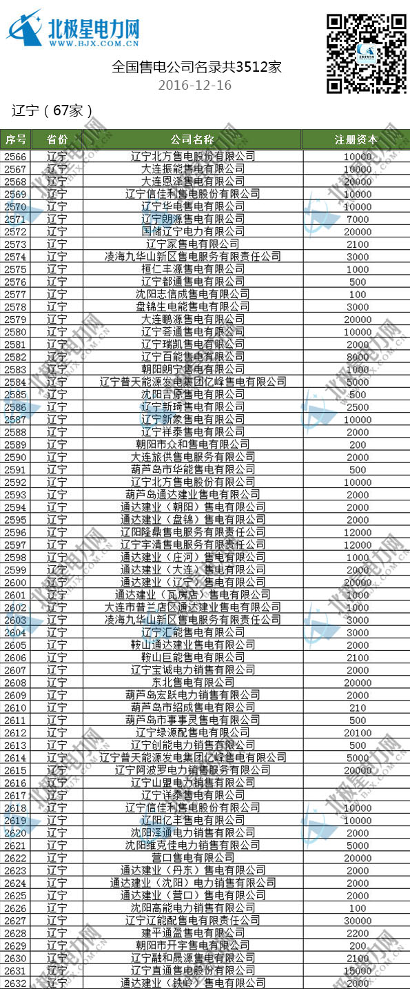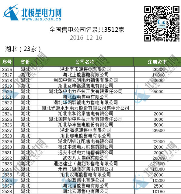 售電公司名單/全國(guó)已成立3512家售電公司(截止2016-12-16)