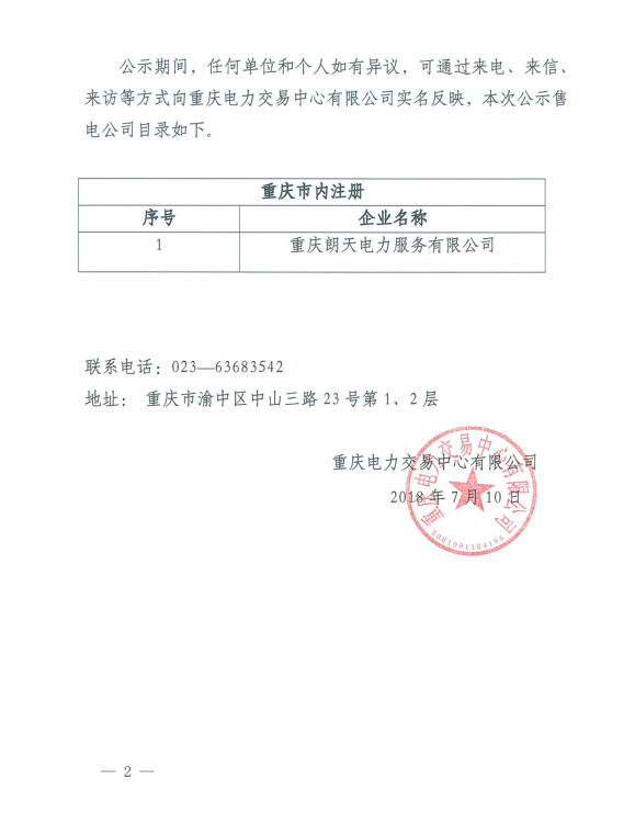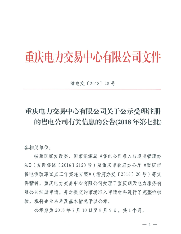 重慶電力交易中心日前發(fā)布了《重慶電力交易中心有限公司關(guān)于公示受理注冊的售電公司有關(guān)信息的公告(2018年第七批)》,公示1家售電公司。公...