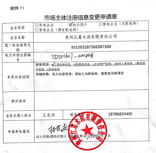 附件2:《市場主體注冊(cè)信息變更申請(qǐng)表(貴州江葛水泥有限責(zé)任公司)》