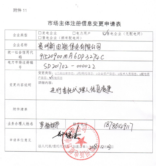 附件4:《市場主體注冊(cè)信息變更申請(qǐng)表(貴州新電能售電有限公司)》