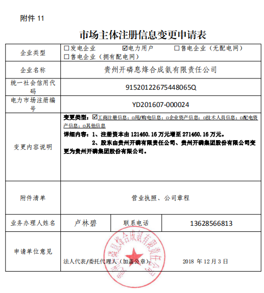 附件3:《市場主體注冊(cè)信息變更申請(qǐng)表(貴州開磷息烽合成氨有限責(zé)任公司)》