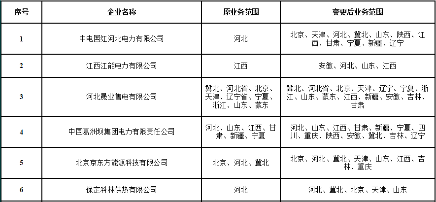 北京電力交易中心關于公示受理業(yè)務范圍變更的售電公司相關信息的公告