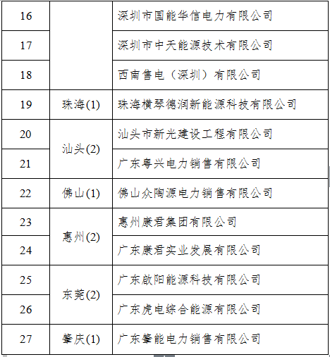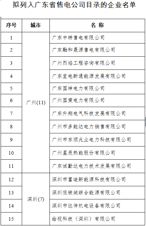 廣東省經(jīng)濟和信息化委關(guān)于擬列入售電公司目錄企業(yè)名單的公示