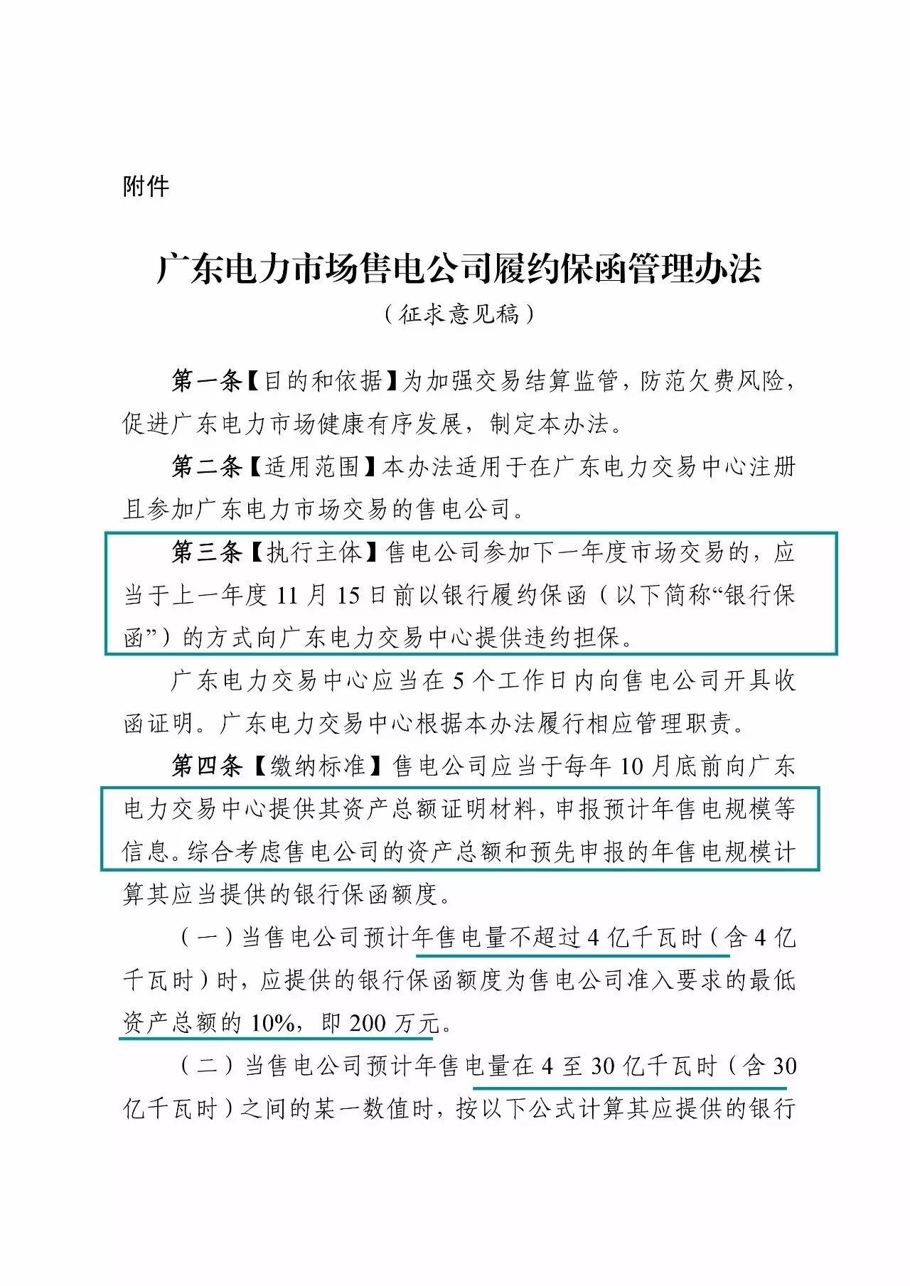 廣東的履約保函制度依據(jù)電量規(guī)模繳納,年售電量不超過4億千瓦時(shí)(含4億),應(yīng)提供的銀行保函額度是售電公司準(zhǔn)入要求最低資產(chǎn)總額的10%,也就是200萬元。