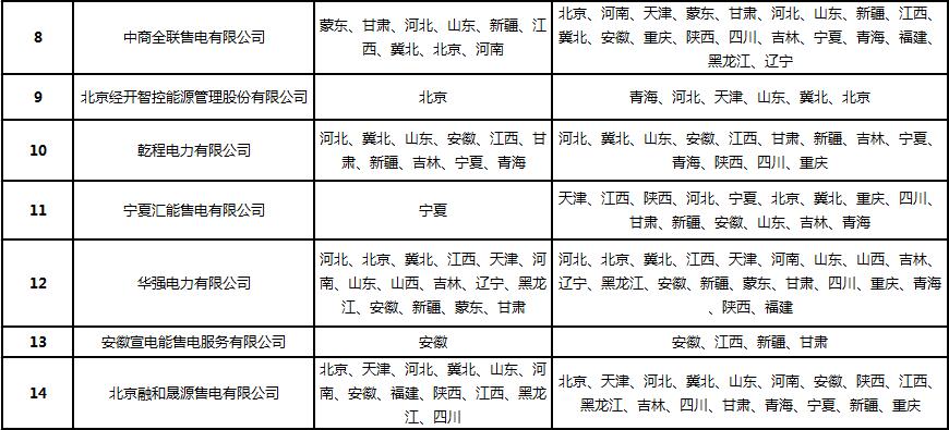 北京新公示14家業(yè)務(wù)范圍有變更售電公司