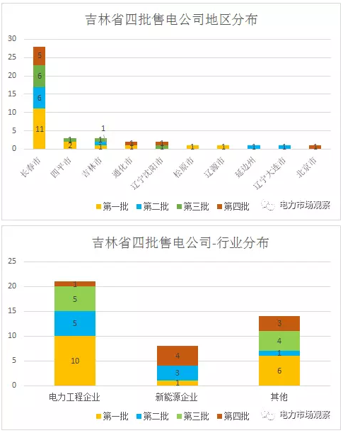 目前,吉林電力交易中心分別于7月7日、8月3日、9月1日以及11月1日公示了四批售電公司,共計(jì)43家。其中,第一批17家,第二批9家,第三批9家,第四批8家。值得一提的是,第二批和第三批售電公司中各有1家跨省售電公