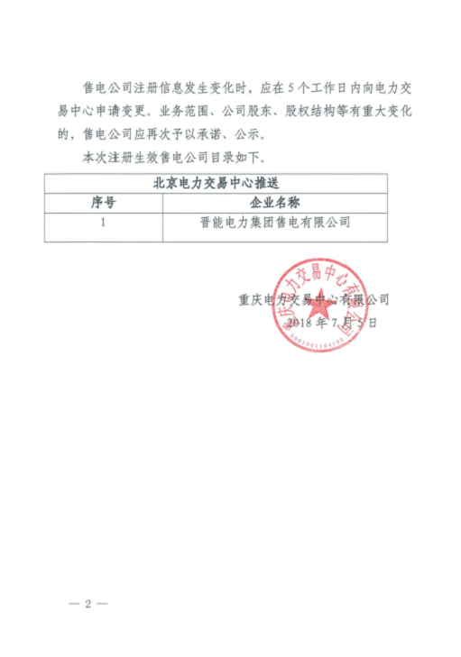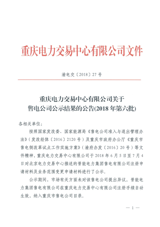 重慶新增北京推送的1家售電公司